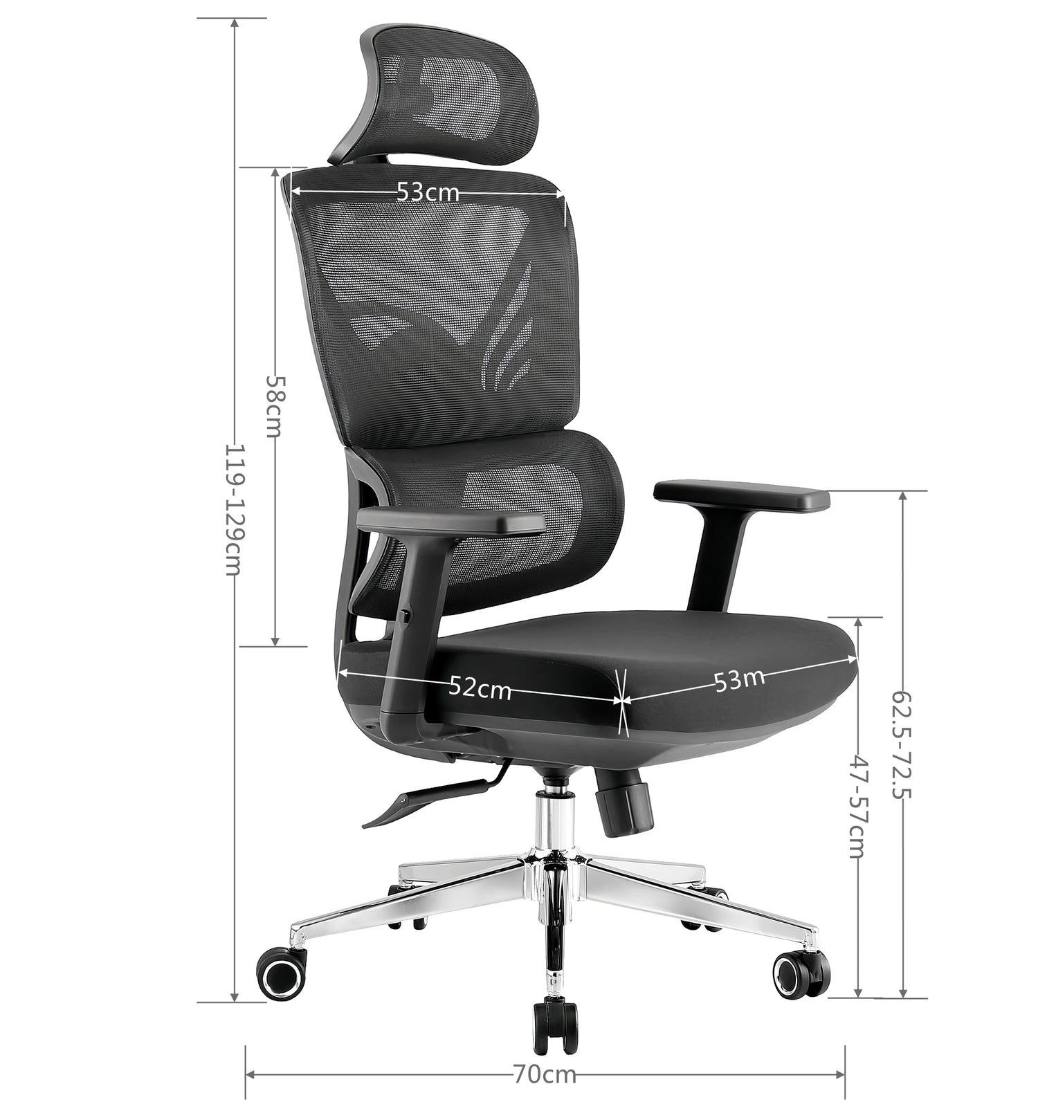 Hauteur des accoudoirs: 62,5–72,5 cm